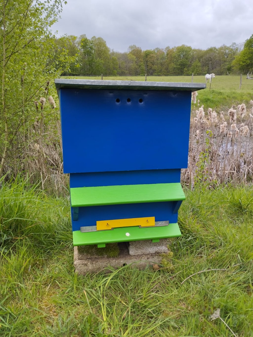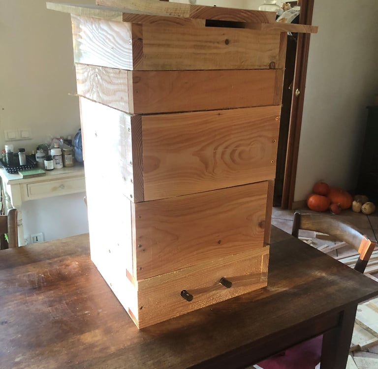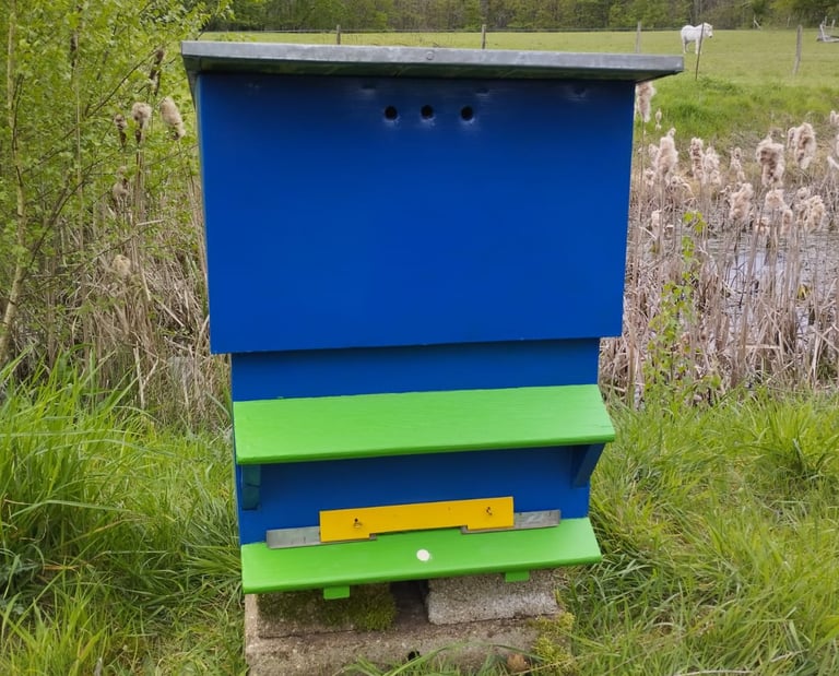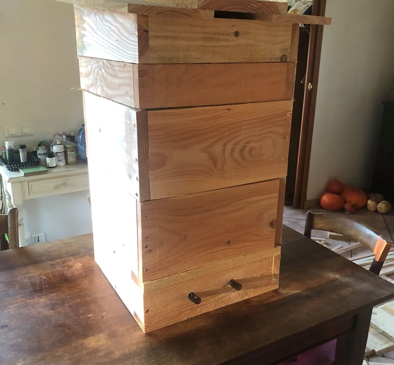 La mise en place de ruches sur notre terrain en 2024 nous a permis de découvrir l'apiculture, de disposer d'une ruche adaptée aux besoins des abeilles et de produire un peu de miel dès la première année. Le partage et les conseils de Benoît se sont avérés très pertinents.